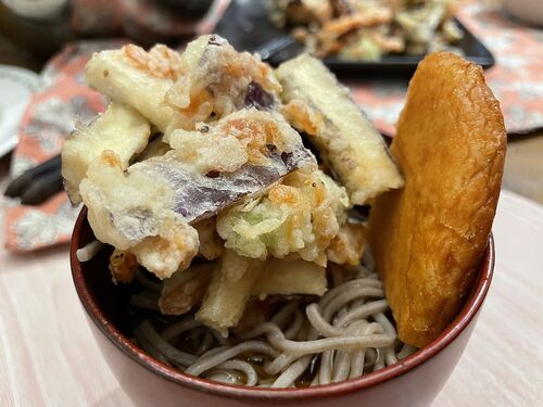 今年はお米やさんで頼んだ出雲そば 日本3大そばって初めて知った。あと2つは戸隠とわんこそば。 かき揚げと供に。